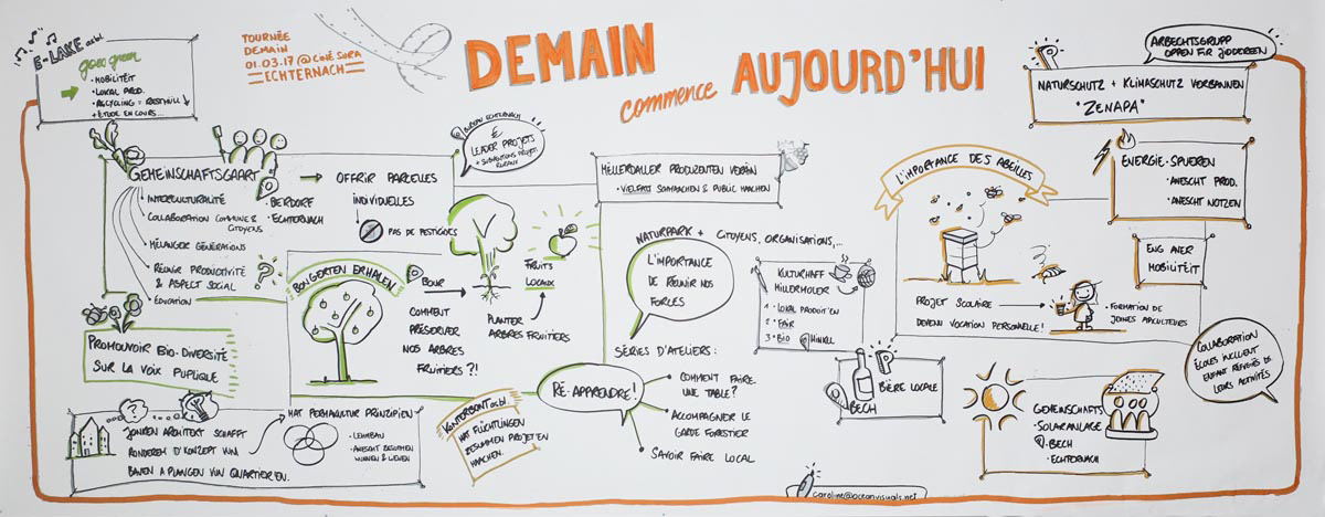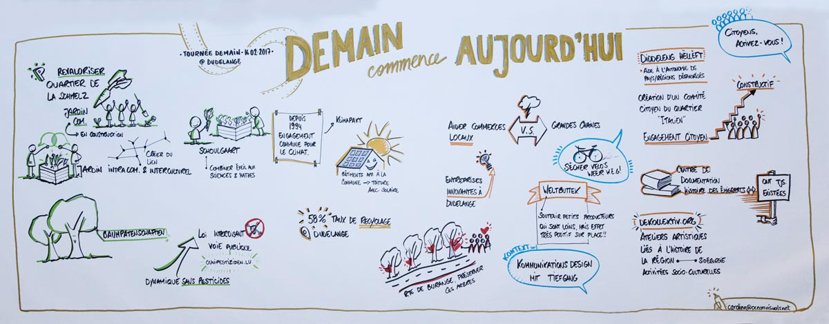 After screenings of the Movie "DEMAIN, le Film" in different villages across the country, CELL proposed a short session with the audience to collect their local projects in a visual harvesting session, this made them explicit and gave them a showcase.